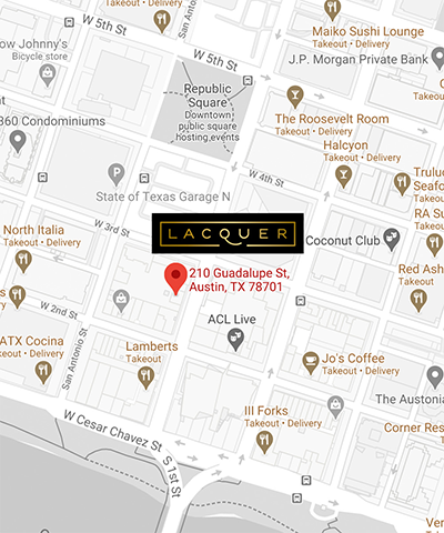 LACQUER Downtown is located on Guadalupe next to La Condesa (between 2nd & 3rd Streets), across the street from Urban Outfitters and the W Hotel.